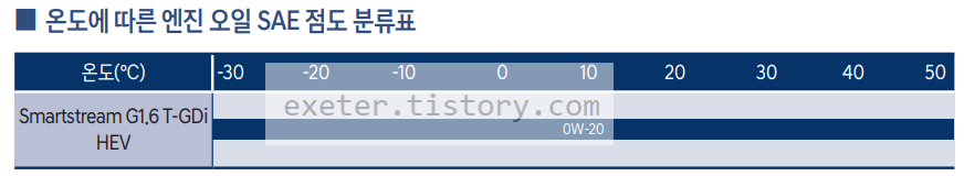 2023 싼타페 하이브리드 '온도에 따른 엔진 오일 SAE 점도 분류표'