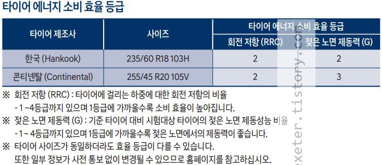 *타이어 순정 규격 및 에너지 소비 효율 등급은 아래 그림 참고