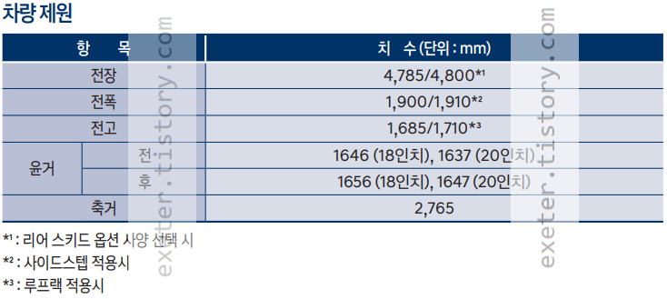 차량 치수 제원