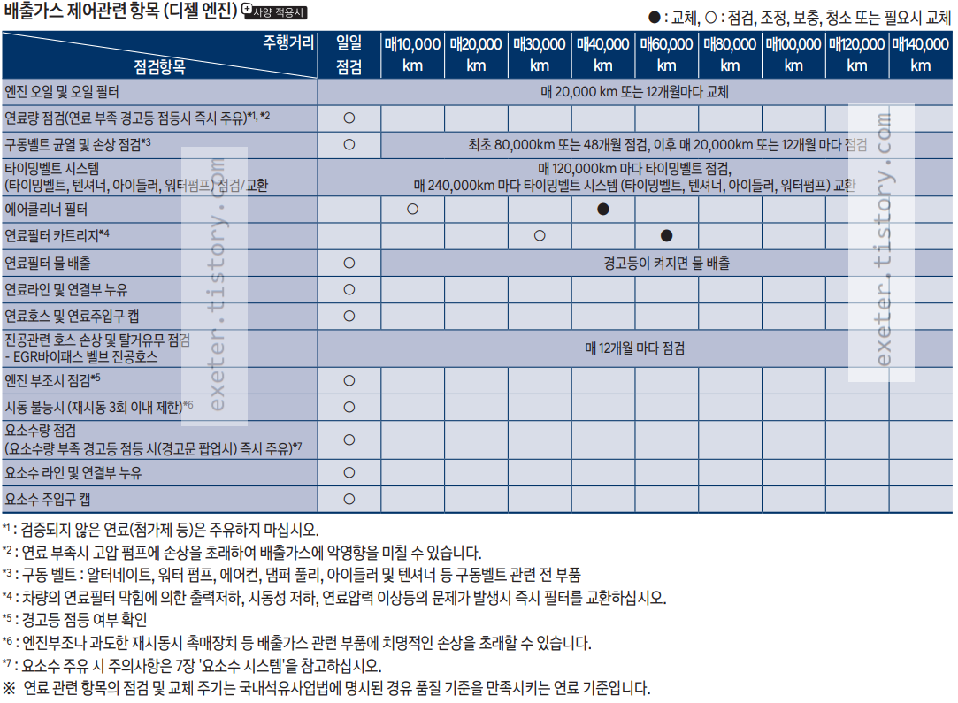 - 연료필터 카트리지: 매 3만 km 점검, 6만 km 교환