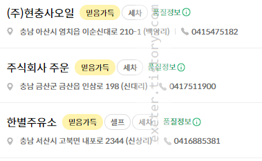 S-OIL(에쓰오일) 고급유(고급 휘발유) "충남 지역" 주유소 목록을 직접 정리하였습니다.