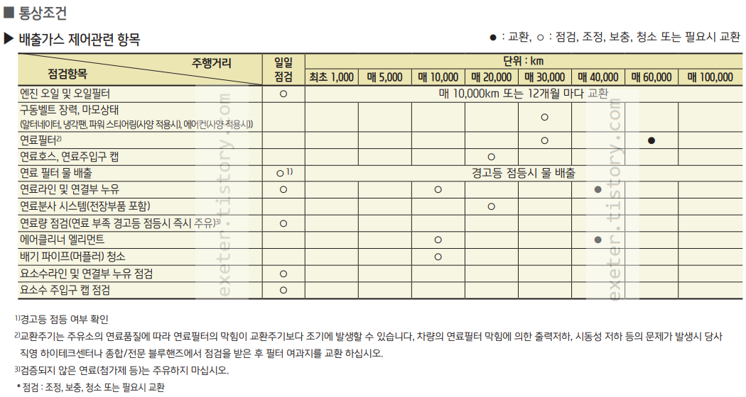 - 연료필터 : 매 3만 km 점검, 6만 km 교환