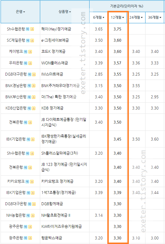 그 외 대부분 은행은 약 3.45% ~3.75% 수준의 정기예금 금리를 보이고 있습니다.