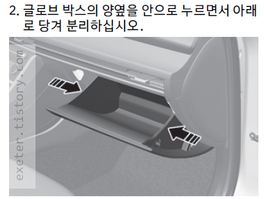 2. 글로브 박스의 양옆을 안으로 누르면서 아래로 당겨 분리하십시오.