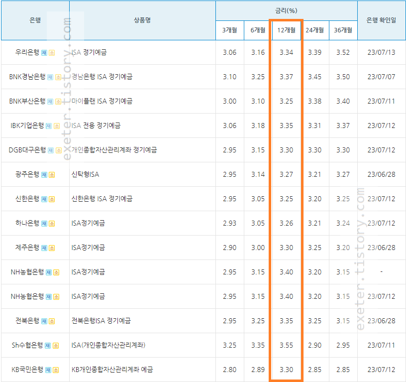 아래 ISA 예금 금리는 모두 2023년 7월 24일 조회 기준 입니다.