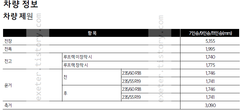 타이어 형식: 235/60 R18 , 235/55 R19