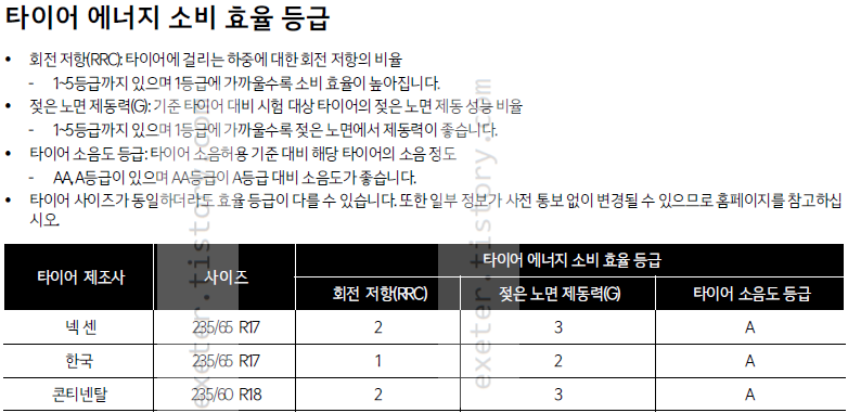 *타이어 순정 사이즈 및 에너지 소비 효율 등급(젖은노면 제동력)은 아래 그림 참고