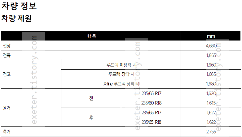 2023 스포티지(NQ5) 출고 타이어 모델: 넥센/한국/콘티넨탈 타이어 - 17인치/18인치