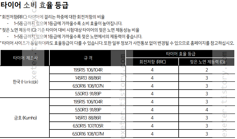 - 1-5등급까지 있으며 1등급에 가까울수록 젖은 노면에서의 제동력이 좋습니다.
