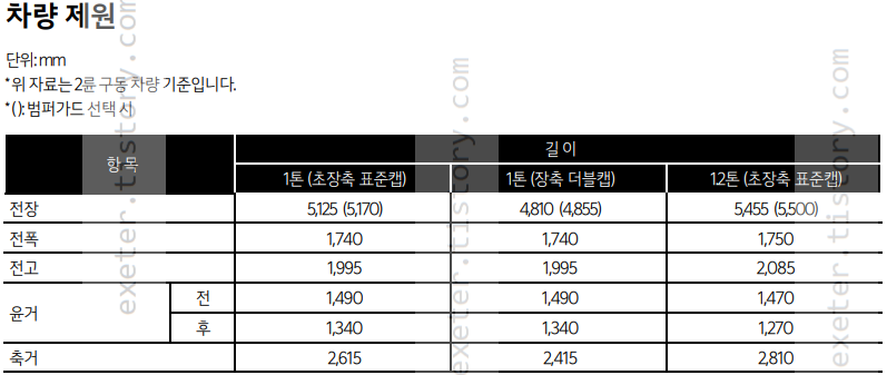 * 1톤(2륜 구동) 차량 기준