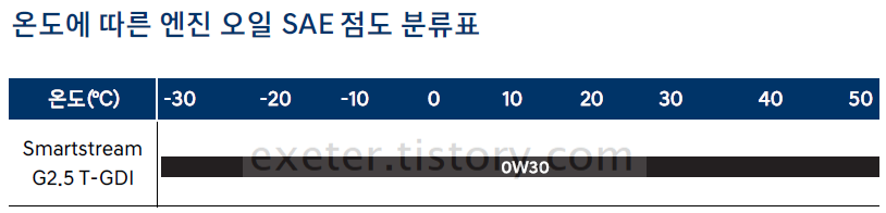 - 엔진오일(스마트스트림 G2.5 T-GDI) 점도: 0W-30