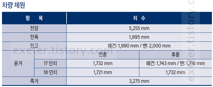 차량 치수 제원