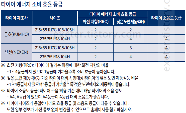 ※ 타이어 사이즈가 동일하더라도 효율 등급 및 소음도 등급이 다를 수 있습니다.
