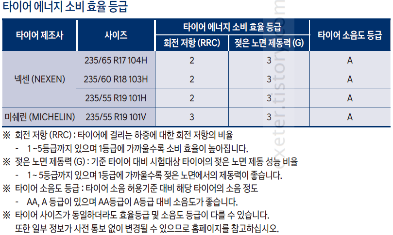 - 1-5등급까지 있으며 1등급에 가까울수록 젖은 노면에서의 제동력이 좋습니다.