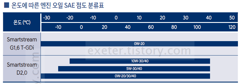 - 엔진오일(1.6 T-GDi) 점도: 0W-20