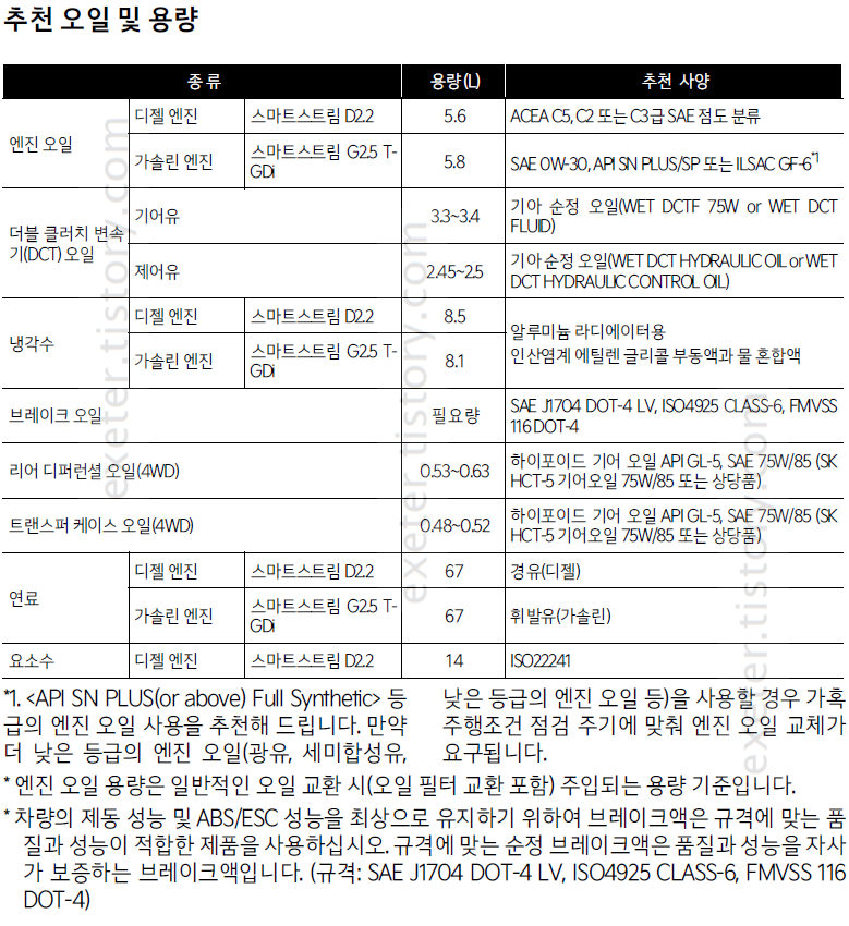 - 엔진 오일 (디젤/스마트스트림 D2.2): 5.6 리터