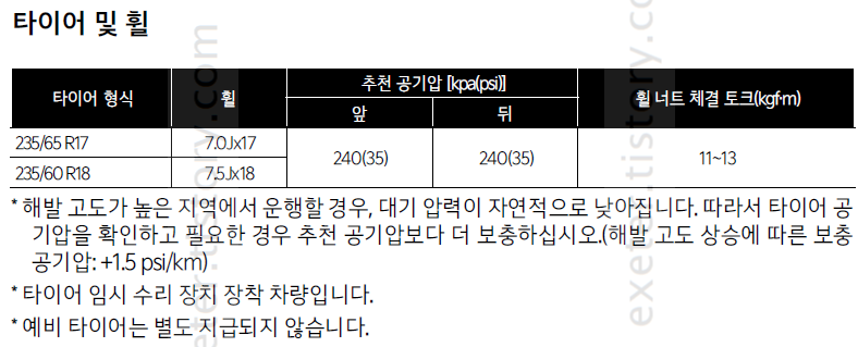 타이어 형식: 235/65 R17, 235/60 R18