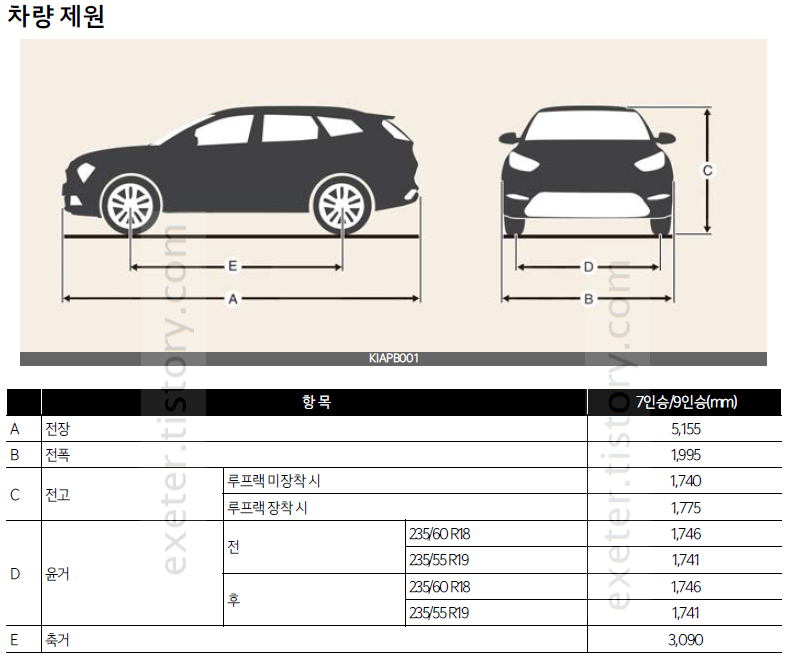 차량 치수 제원