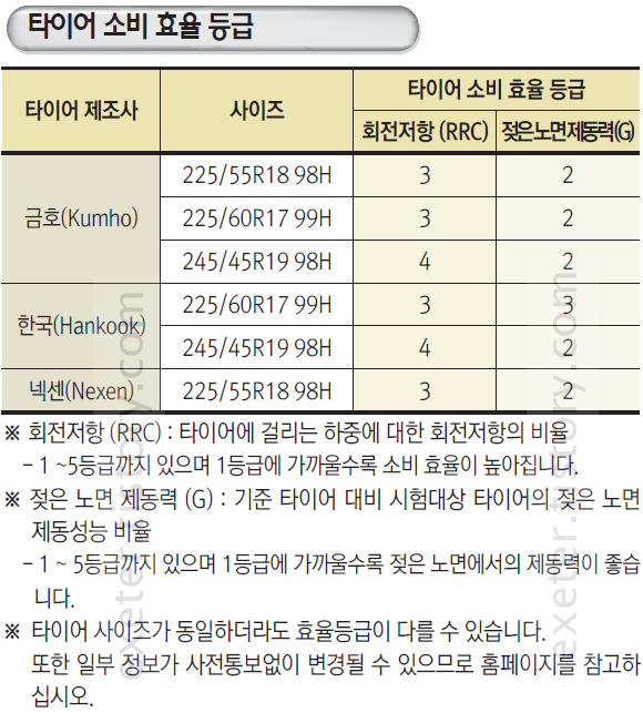 ※ 타이어 사이즈가 동일하더라도 효율등급이 다를 수 있습니다.