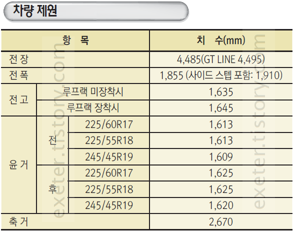 차량 치수 제원