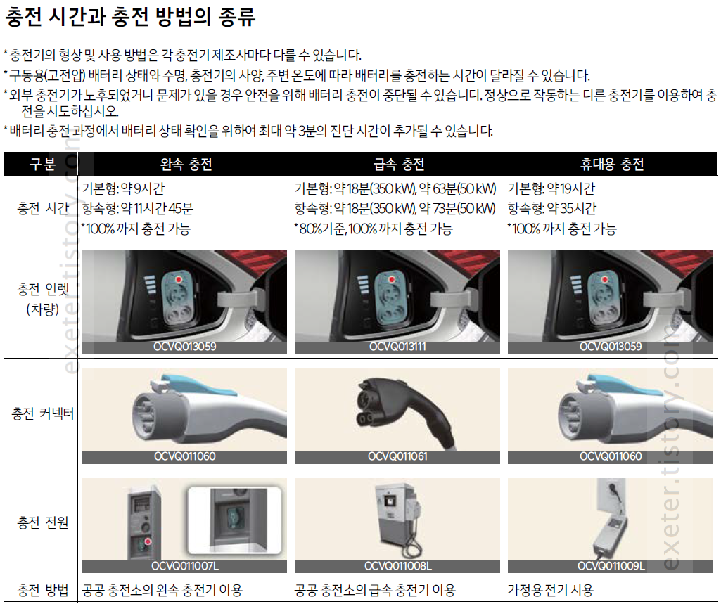 * 구동용(고전압) 배터리 상태와 수명, 충전기의 사양, 주변 온도에 따라 배터리를 충전하는 시간이 달라질 수 있습니다.