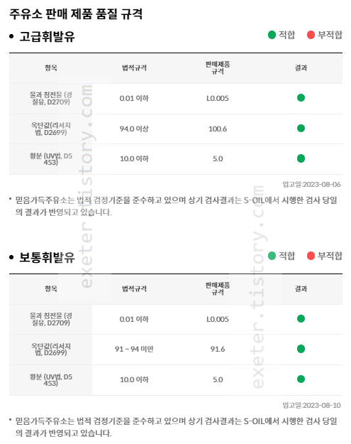 물론 '믿음가득 주유소'가 아니라고 신뢰하지 못하거나, 품질에 문제가 있다는 의미는 아닙니다만, 에스오일에서는 상세하게 품질 정보를 제공해주니 소비자 입장에서는 좋은 것 같습니다.