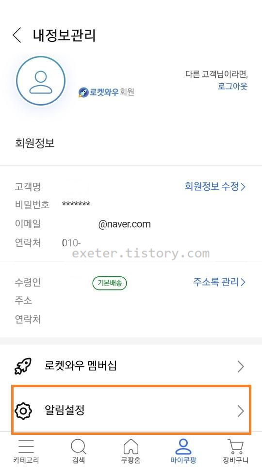 아래는 쿠팡 마케팅 알림(푸시)을 해제(수신거부) 하는 방법입니다.