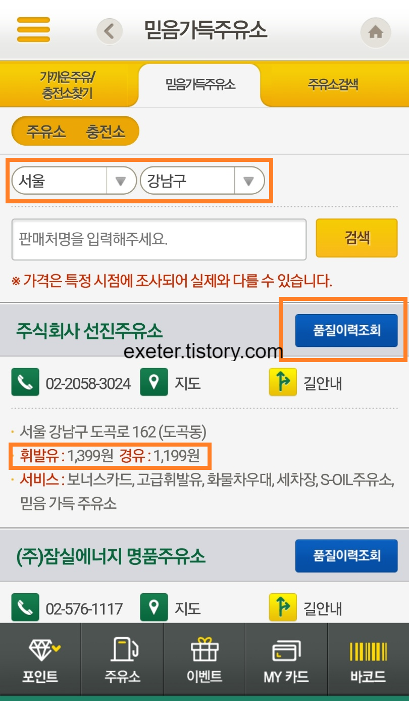2. 주유소 위치 선택 (예시는 서울/강남구)