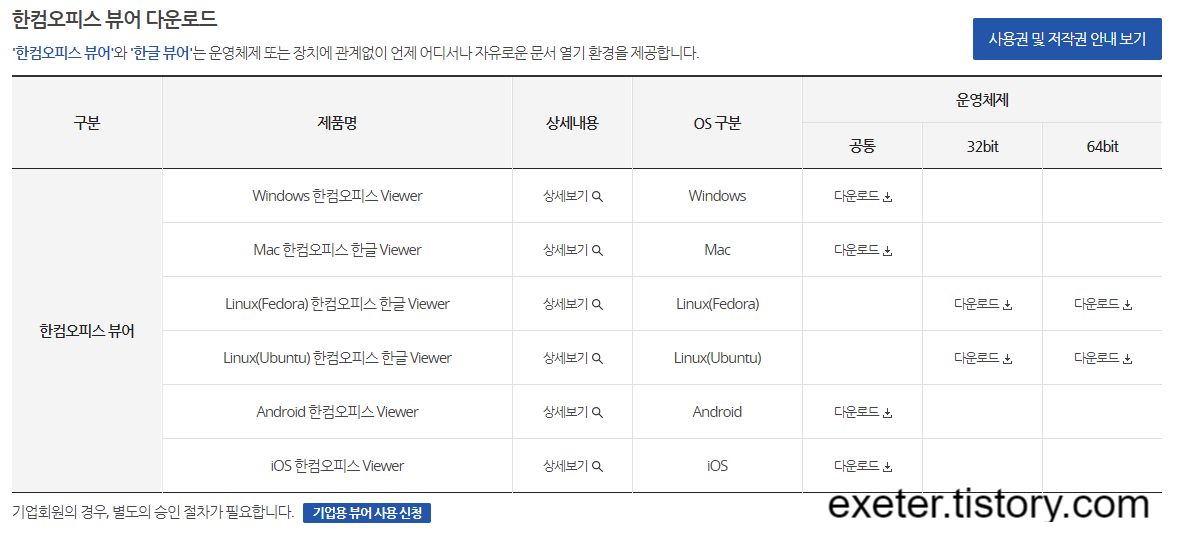 한컴오피스 뷰어 다운로드 - 바로가기