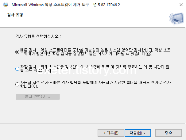 4) 검사 유형 선택, [다음] 선택. (빠른 검사의 경우 보통 3~10분 내로 종료됨)