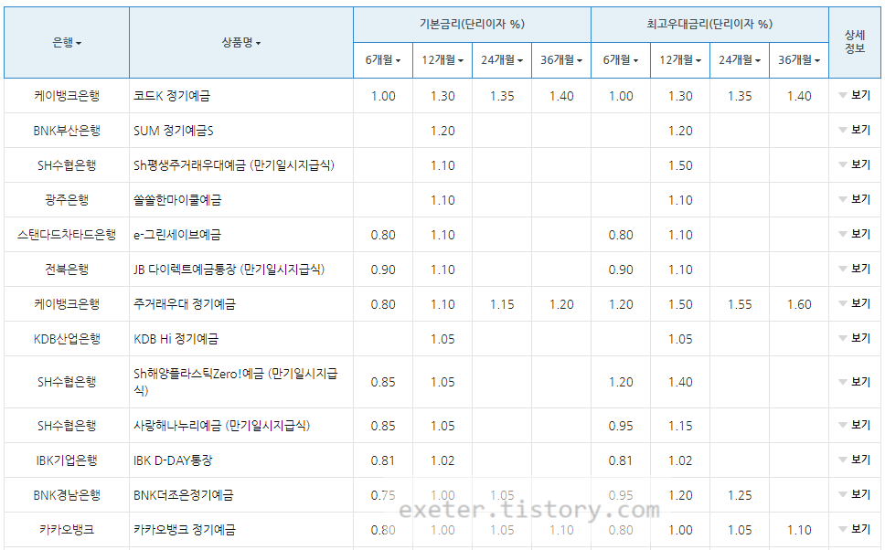 1. 케이뱅크은행 / 코드K 정기예금 / 1.30