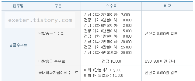 | 당발송금 수수료 |