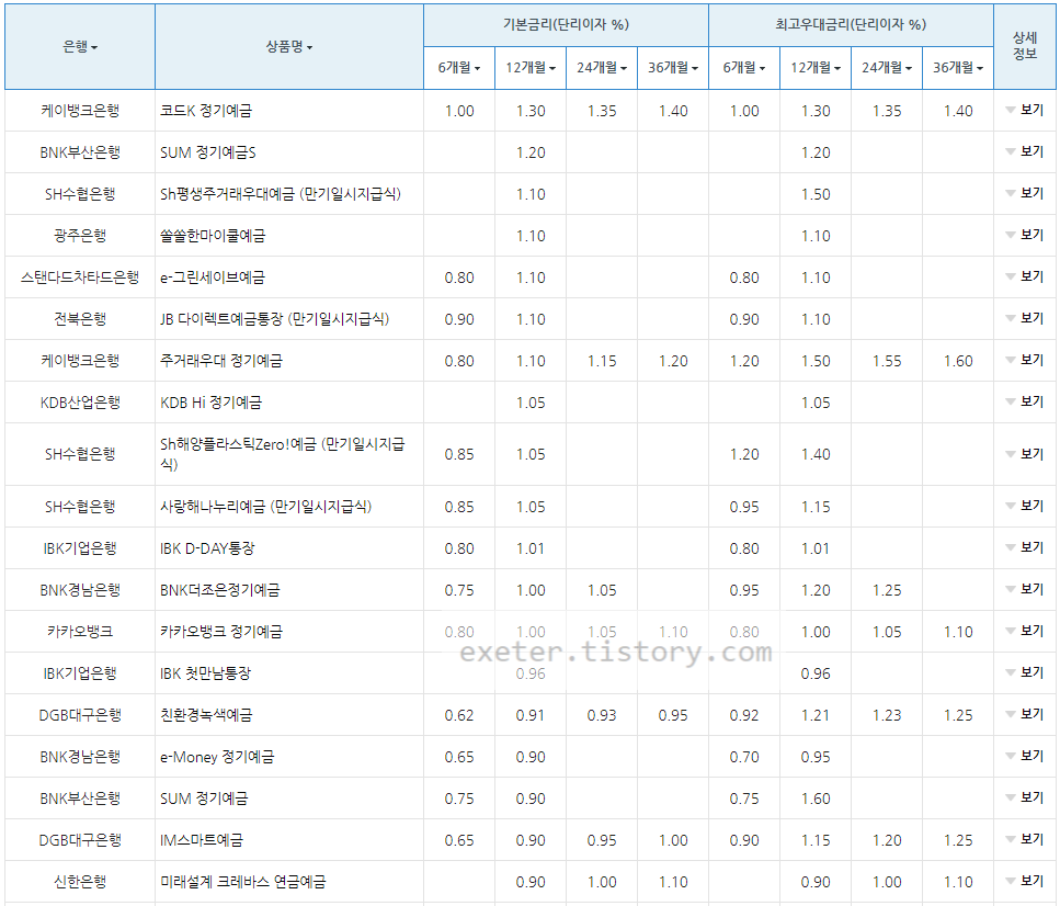 1. 케이뱅크은행 / 코드K 정기예금 / 1.30