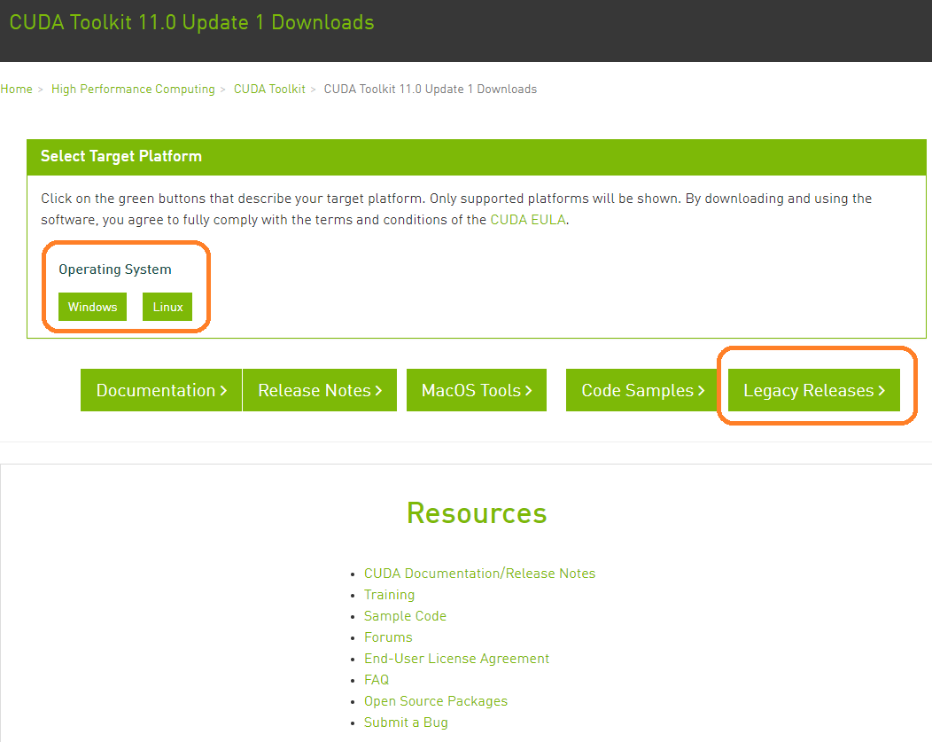 Select Target Platform Click on the green buttons that describe your target platform. Only supported platforms will be shown. By downloading and using the software, you agree to fully comply with the terms and conditions of the CUDA EULA. Operating System