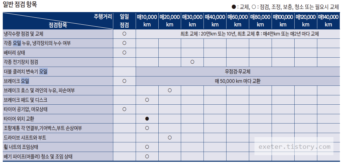- 변속기 오일: 무점검/무교체