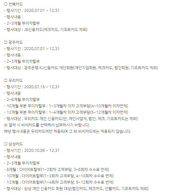- 행사대상 : 삼성 개인 신용카드 회원 대상(법인카드, 체크카드, 선불카드, 기프트카드 제외)