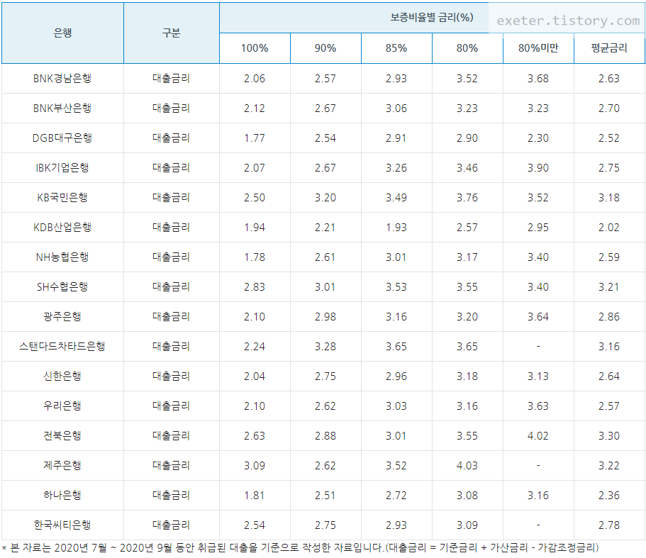 (각각의 금리는 대출금액에 따른 가중평균 금리를 공시하고 있습니다.)