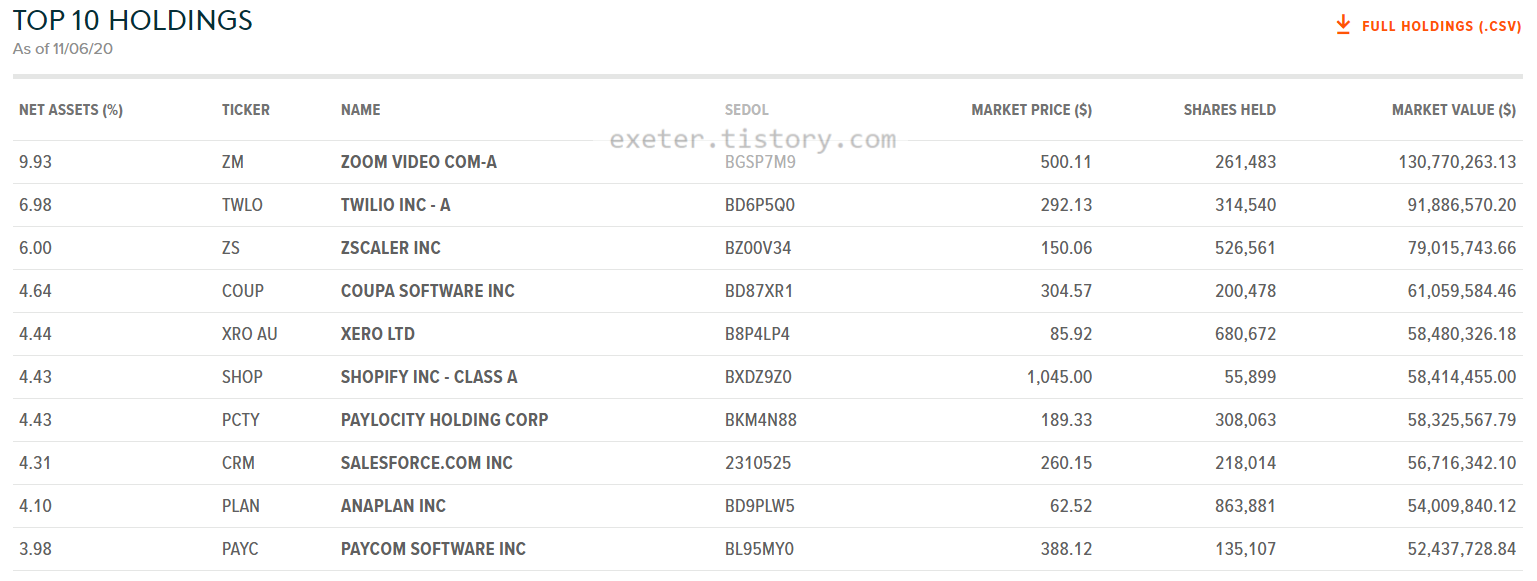 그리고 본 포스팅의 주제인 Cloud Computing ETF를 찾았습니다.