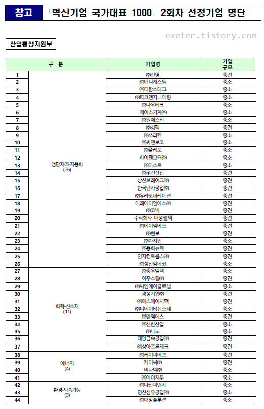 선정된 혁신기업 전체 목록은 아래 금융위원회에서 공개한 원본 PDF 자료를 참조하세요.