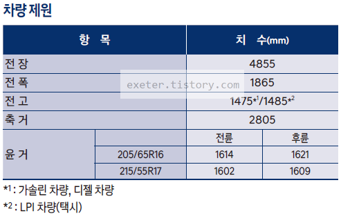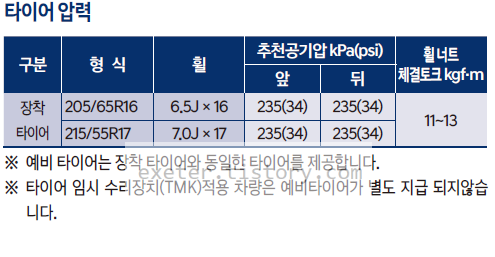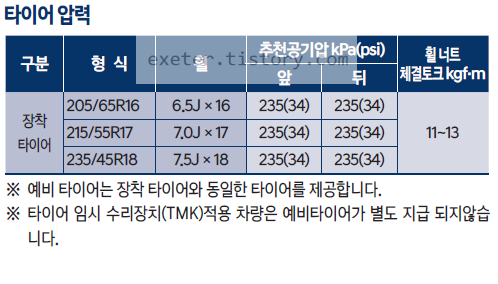 타이어 형식: 205/65R16, 215/55R17, 235/45R18