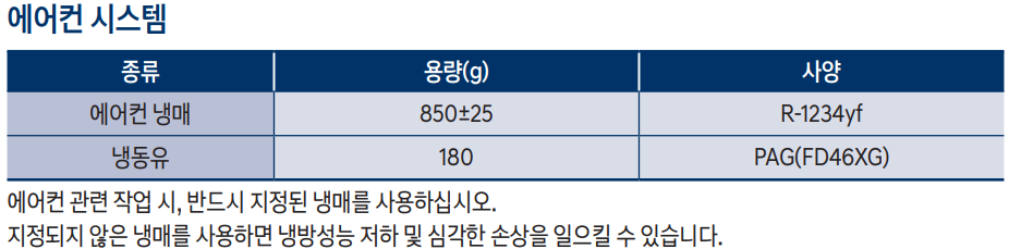에어컨 냉매: 850 +-25 (g)