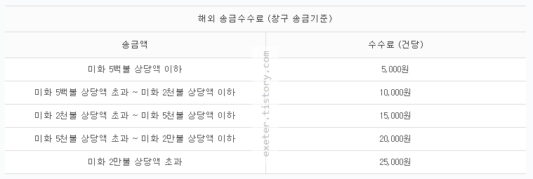 해외 송금수수료 (창구 송금기준)송금액수수료 (건당)
