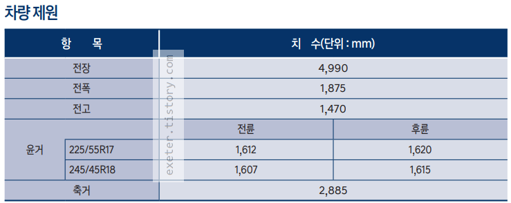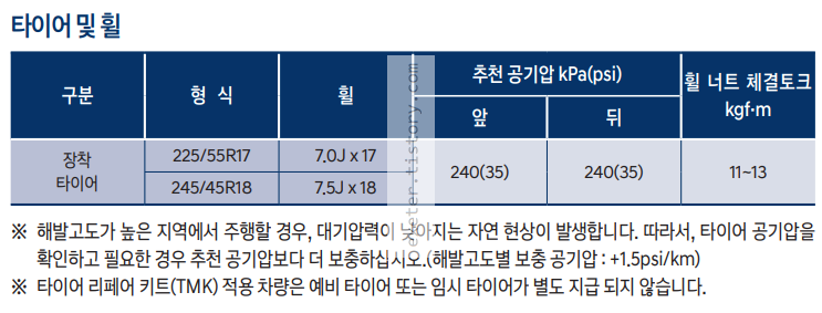 <타이어 및 휠 제원 (2020 그랜저 IG)>
