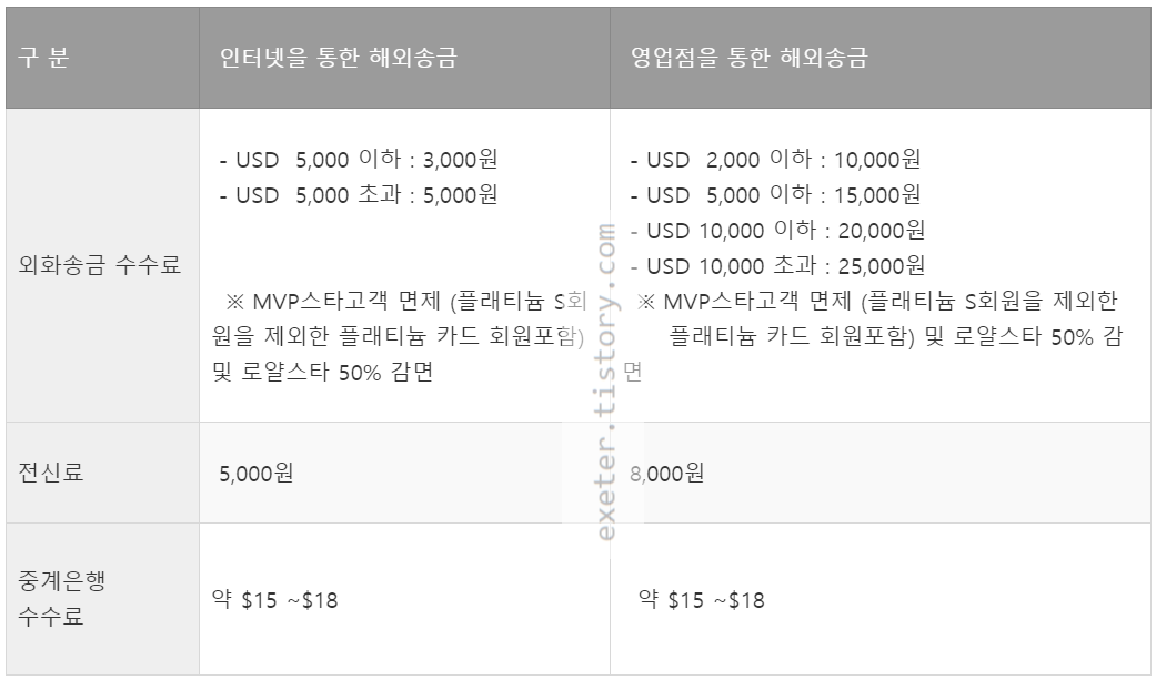 국민은행 해외은행 송금시 '수수료'는 송금 방법(인터넷/영업점)에 따라 다릅니다.