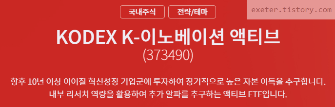 - [KODEX K-이노베이션 액티브]는 국내 시장 코스피/코스닥에 상장된 성장형 기업군에 투자하는 ETF임