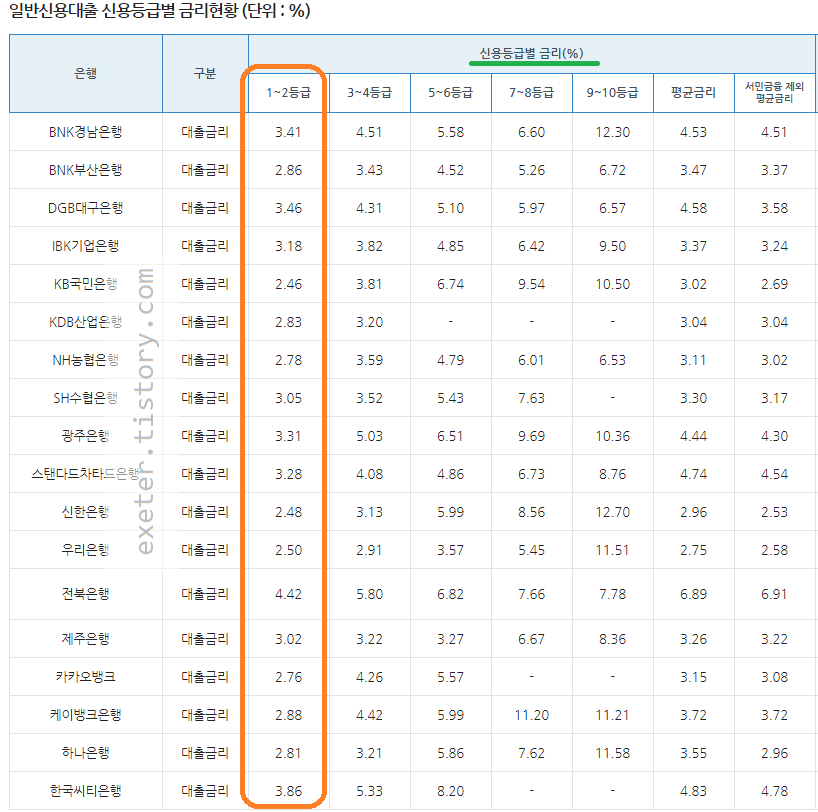 일반 신용대출 금리는 아래 게시글에서 확인하세요.