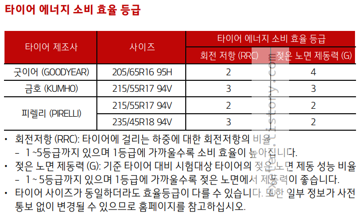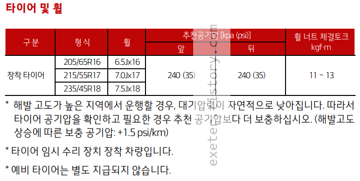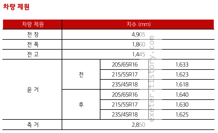 타이어 형식: 205/65R16, 215/55R17, 235/45R18