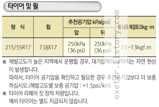 <타이어 및 휠 제원>