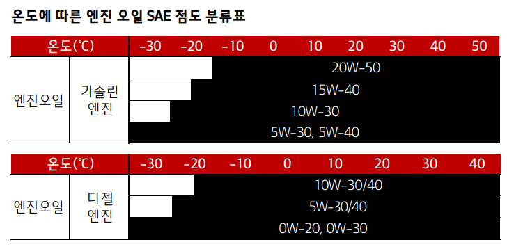 아래 그림에서 엔진오일/변속기오일/냉각수/브레이크 오일/연료통 용량 등 각종 오일류의 용량(단위: L) 및 추천사양을 참고하시기 바랍니다.