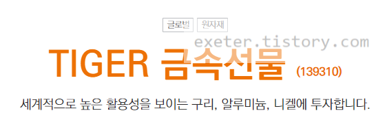 종목: 미래에셋 TIGER 금속선물 특별자산 상장지수투자신탁(금속-파생형)